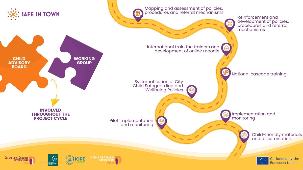 O projeto trabalha com municípios selecionados em Itália, Grécia, Chipre e Portugal para criar ambientes mais seguros, inclusivos e amigos das crianças. Promove uma abordagem coordenada e multidisciplinar, congregando autoridades locais, entidades prestadoras de serviços, comunidades e as próprias crianças para prevenir a violência, reforçar os sistemas de proteção e garantir respostas eficazes perante situações de risco.
