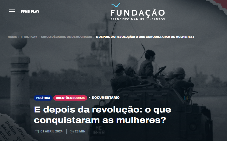 O minidocumentário "E Depois da Revolução: O Que conquistaram as mulheres?" conta com a participação de Heloísa Perista do CESIS. Através dos testemunhos de mulheres e homens que lutaram pela igualdade de género, este episódio acompanha as maiores conquistas feitas no feminino nas últimas cinco décadas.