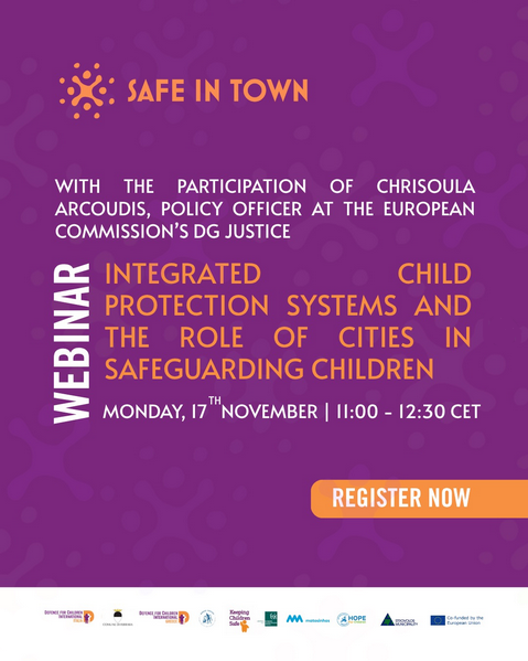 Com cofinanciamento da Comissão Europeia, o projeto Safe in Town conta com a participação da Câmara Municipal de Matosinhos e é promovido em Portugal pelo CESIS. Este webinar irá explorar como as cidades podem apoiar e reforçar eficazmente os sistemas integrados de proteção infantil, com base nas normas internacionais e nas experiências-piloto desenvolvidas no âmbito do projeto.